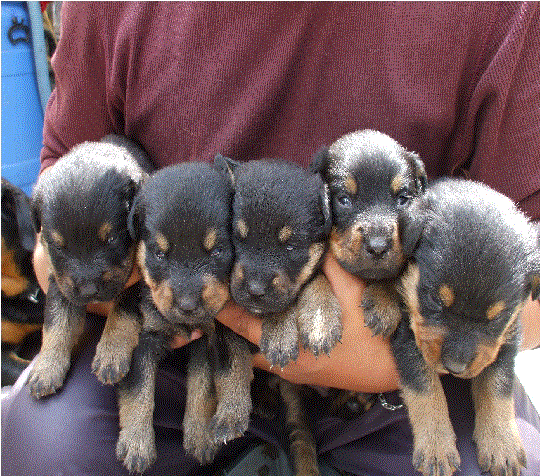 A TRES SEMANAS LOS CACHORRITOS PESAN 1KILO 400 GRAMOS.